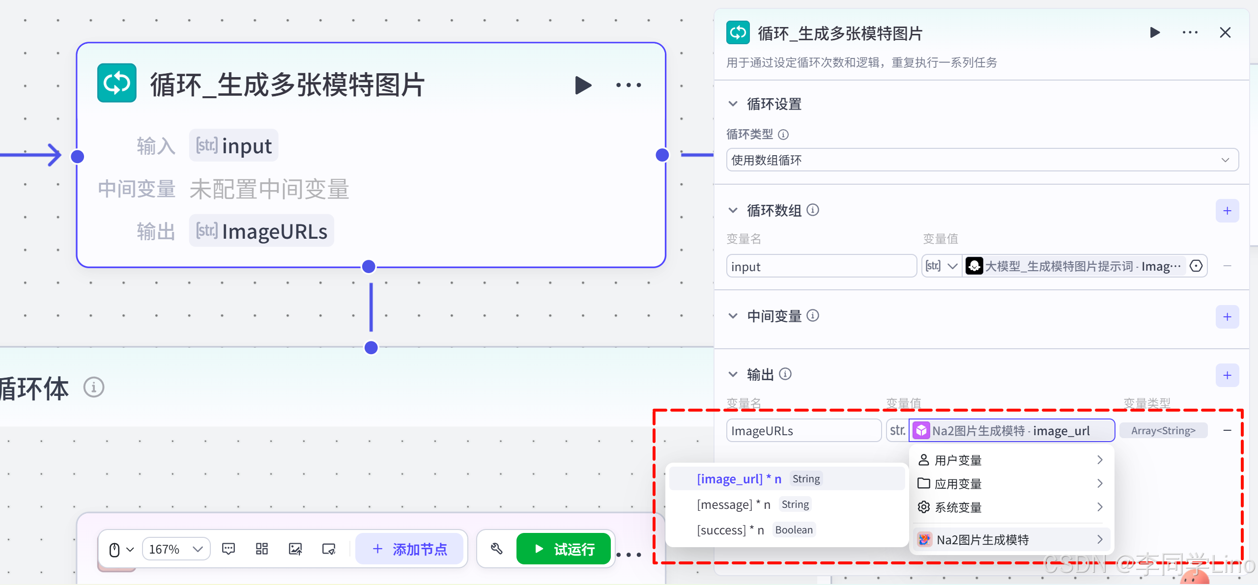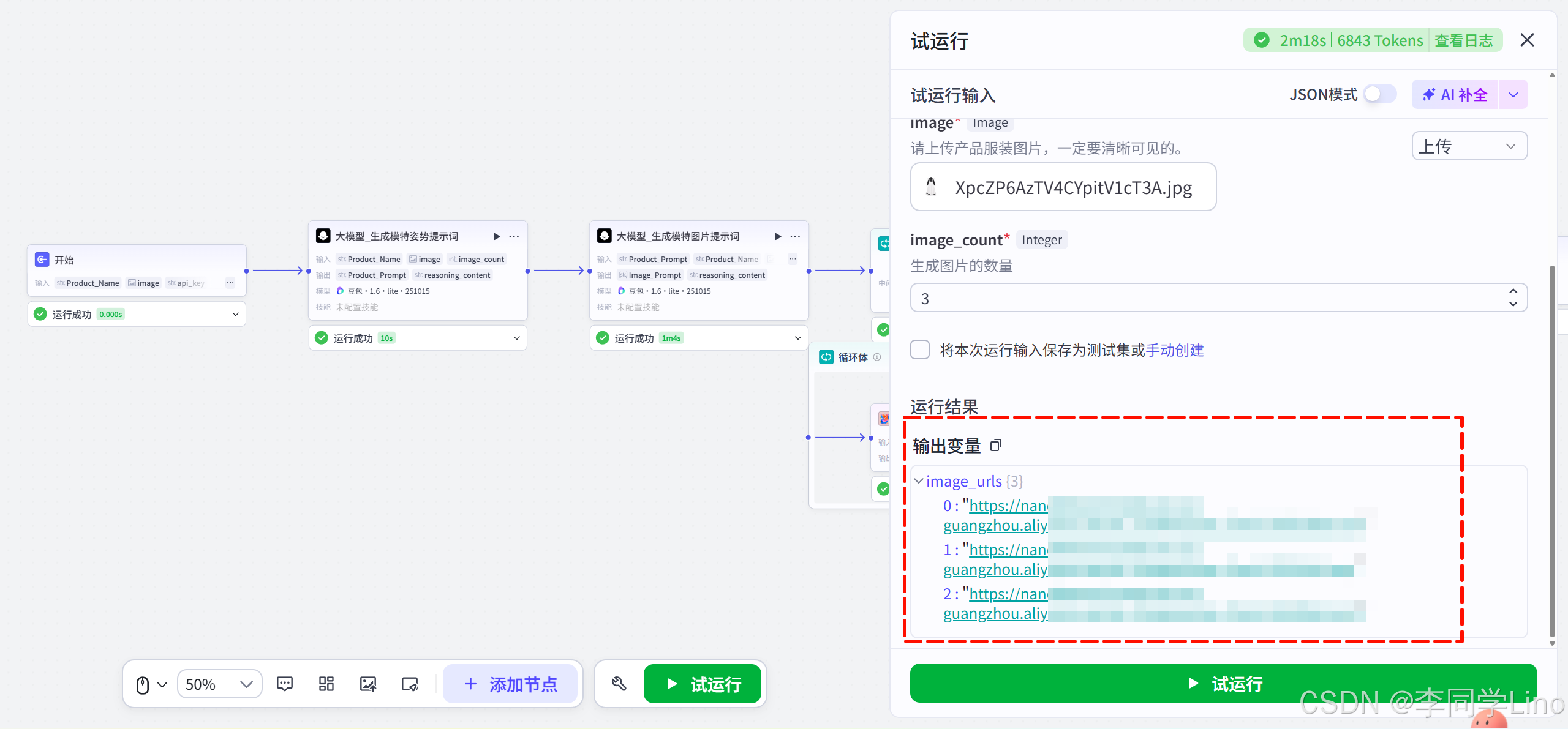 循环_生成多张模特图片 · ImageURLs。