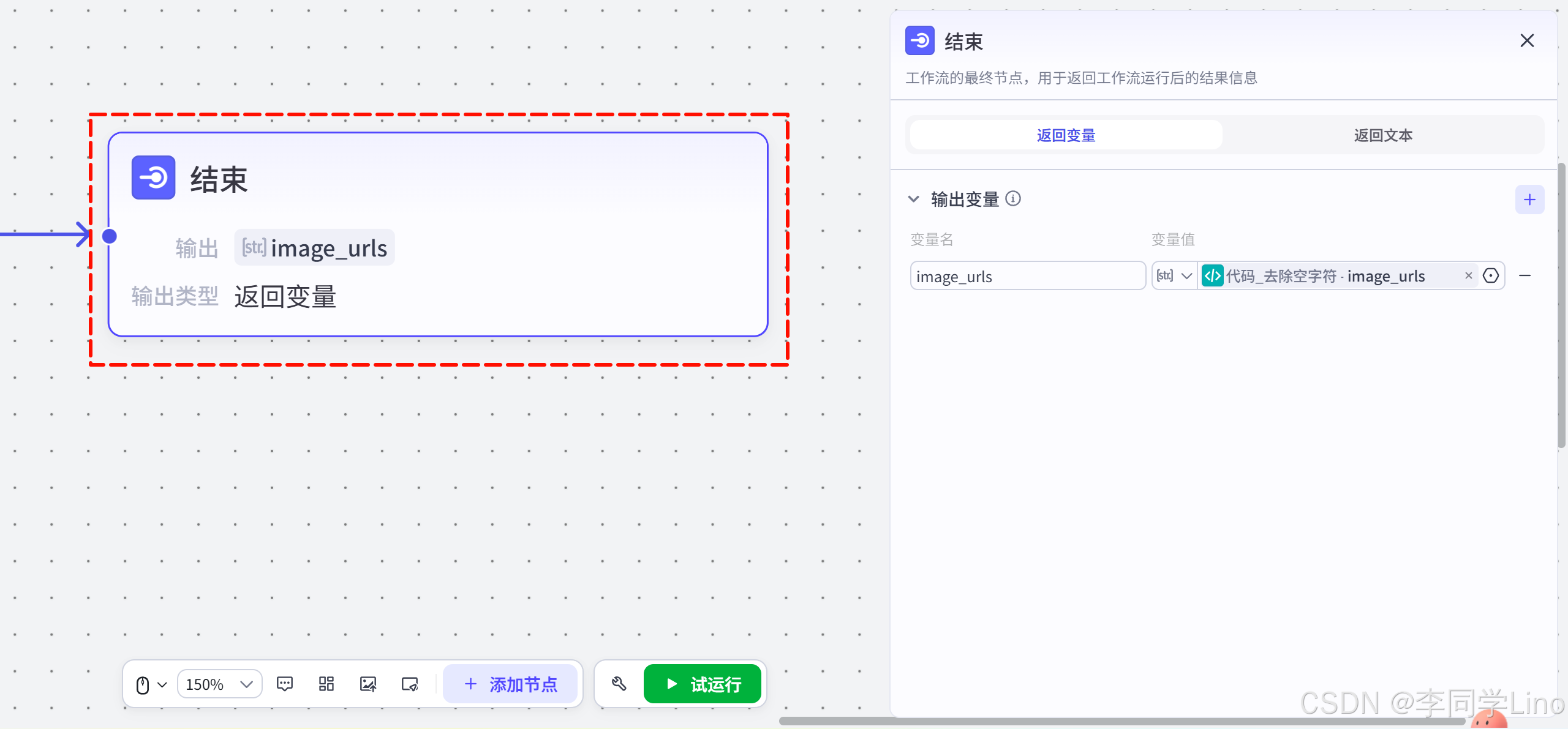 image_urls变量,直接作为 End 节点的输出变量。 -