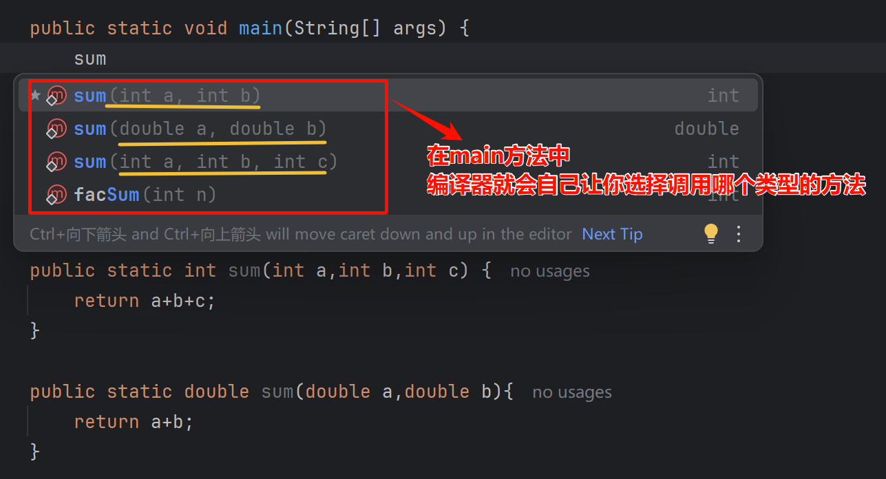 4.编译器在编译代码时,会对实参类型进行推演,根据推演的结果来确定调用哪个方法