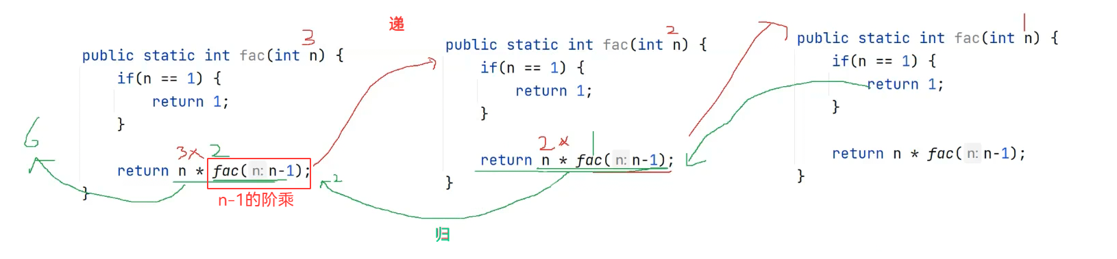 System.out.println("函数结束, n = 1 ret = 1");