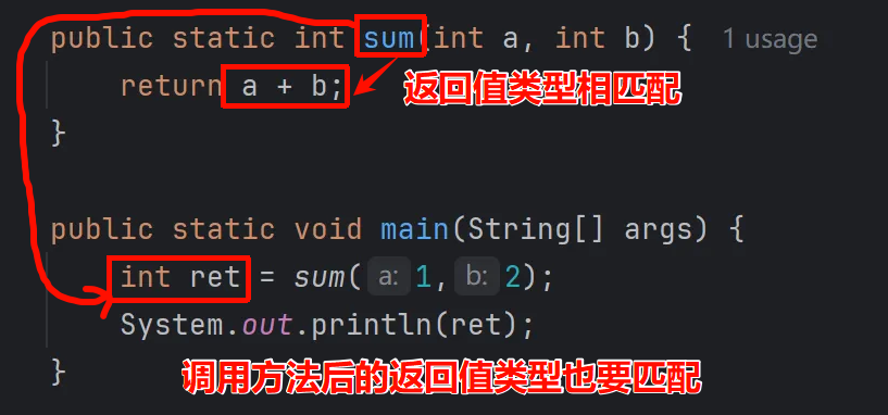 3.如果方法有返回值,需要接收返回值结果