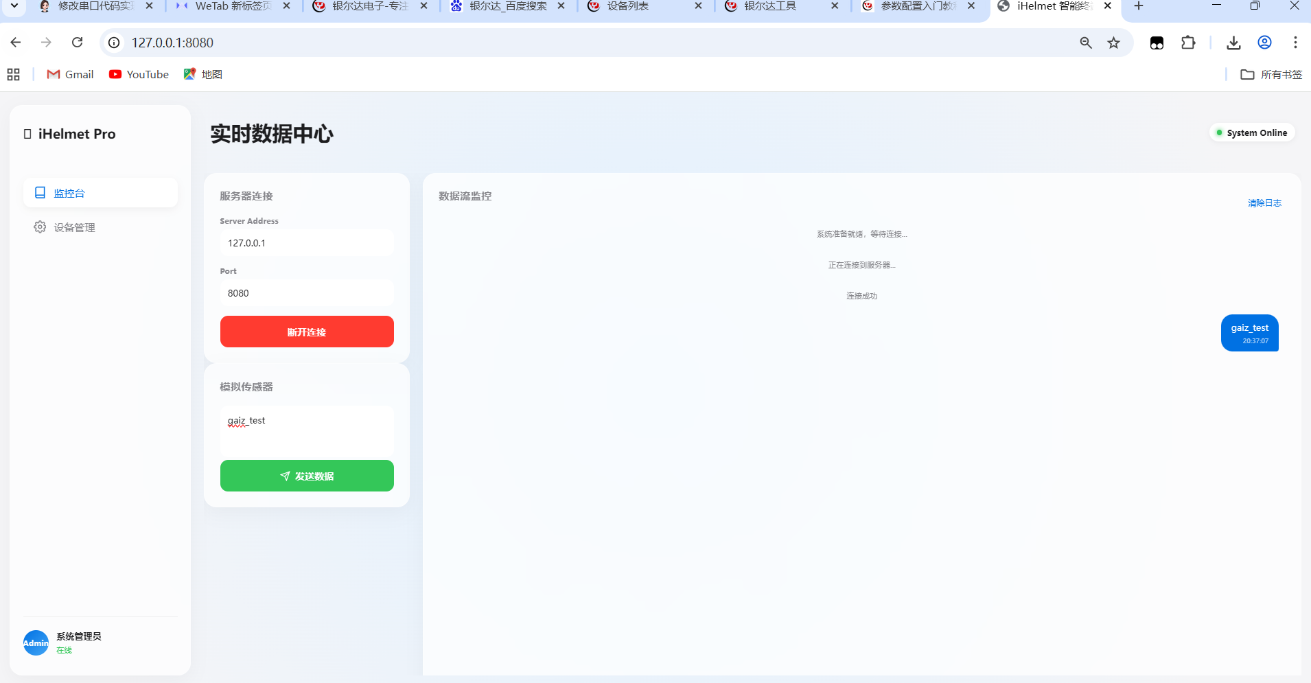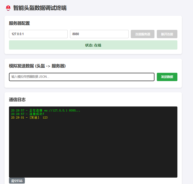 本文介绍了一个智能头盔管理系统的开发过程。系统采用前后端分离架构,后端使用Node.js搭建WebSocket服务器实现数据转发功能,前端采用纯HTML/CSS/JS开发,具有现代化UI设计。开发环境需要安装Node.js(v14+)、CMake和Python。系统包含以下核心功能:1) 可配置的WebSocket连接;2) 实时数据监控界面;3) 模拟传感器数据发送;4) 美观的苹果风格UI设计