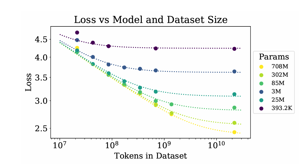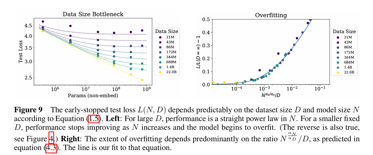 ,这表明每当模型参数量增加 8 倍,数据量只需增加约 5 倍即可避免过拟合。