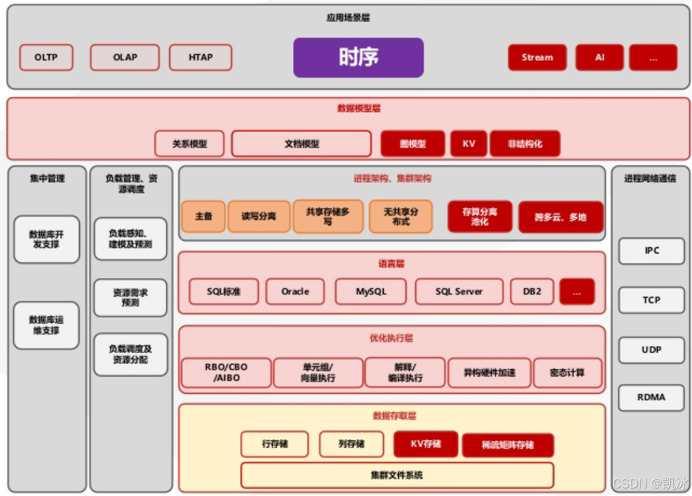 强调分布式多模融合架构,支持时序、关系、文档等多种数据模型的统一处理,原生集成AI算法。 |