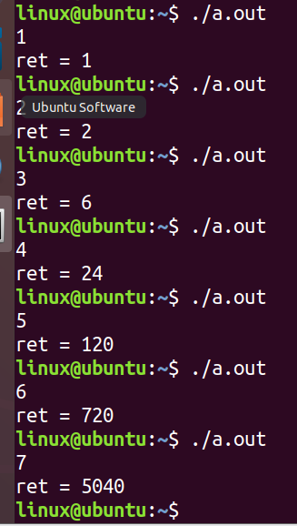21 ret = fun(n);