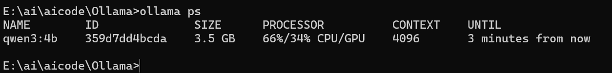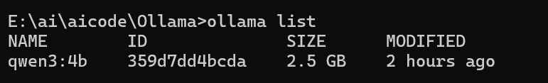 运行某个模型E:\ai\aicode\Ollama>ollama run qwen3:4b