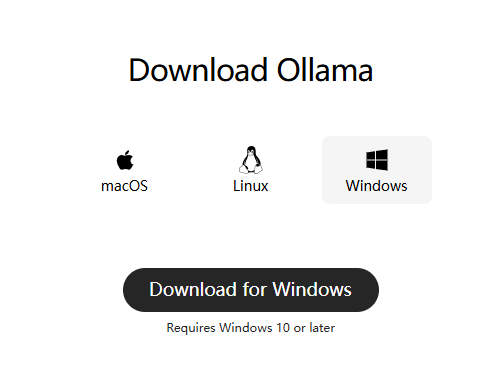 - 先下载 Ollama 的 Windows 安装包:Ollama 官方下载(文件名为