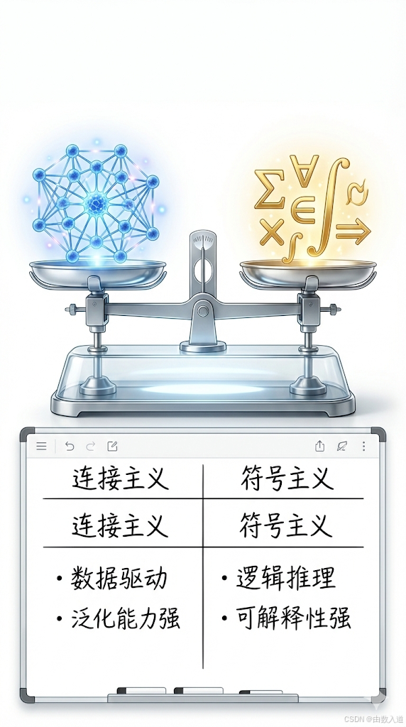 | 特性 | 连接主义 (神经网络) | 符号主义 (逻辑/搜索) |