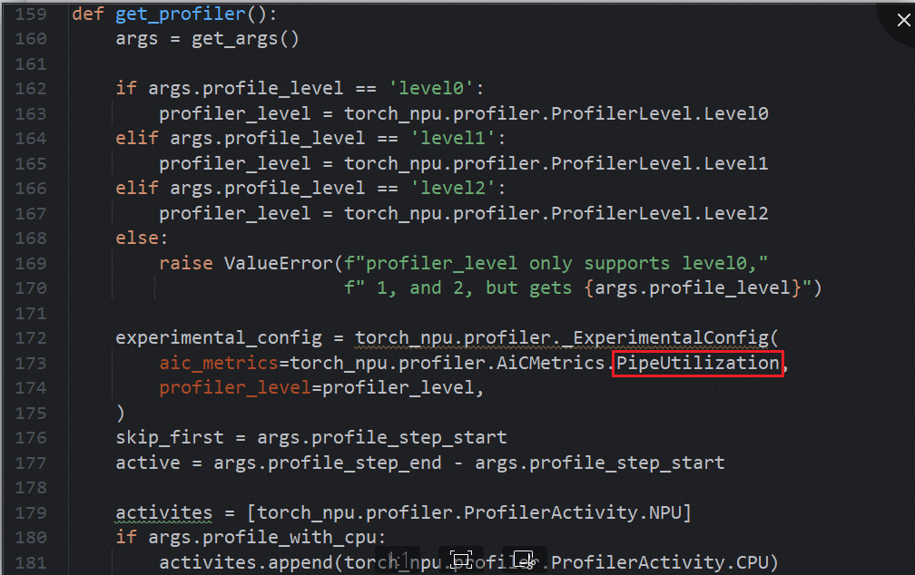 \1. 打开mindspeed_llm/training/training.py,找到get_profiler()方法,将PipeUtilization修改为ArithmeticUtilization