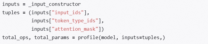 | thop/ptflops | 输出MACs,需要将构造transformer模型输入的过程先处理好,然后再借助它们计算FLOPs的API提供的参数进行传入,形如:![]() |