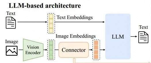 当前多模态理解模型主流架构如下图所示:其中Vision Encoder(例如ViT)和Connector(VLAdapter,通常为MLP结构)通常为参数冻结状态,因此在计算model flops针对这些模块只计算前向过程。