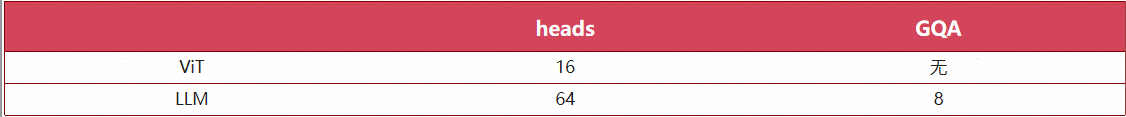 另外,以Qwen2.5VL 72B模型为例:各模块heads数量和GQA数量如下表: