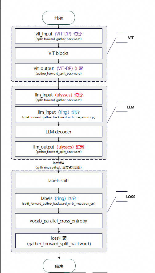 本次适配的USP_ViT-DP CP长序列流程图如下所示: