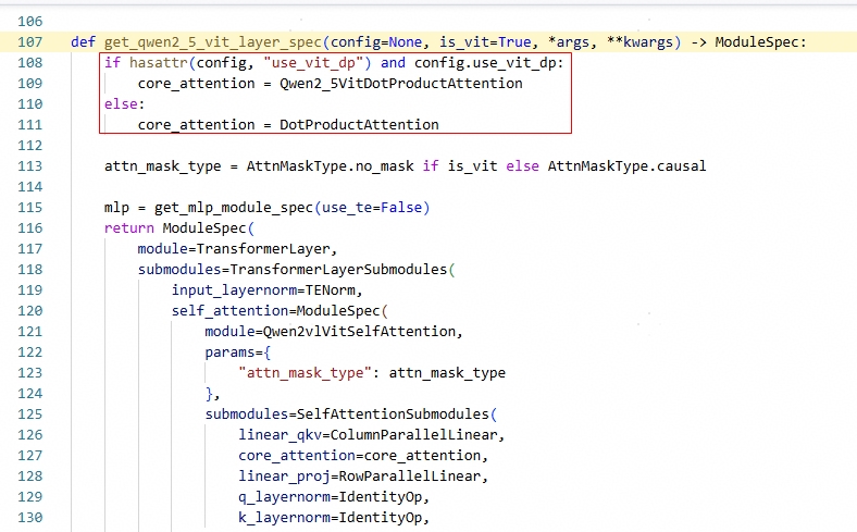 | Qwen2_5VitDotProductAttention替换DotProductAttention,实现ViT和LLM CP隔离: