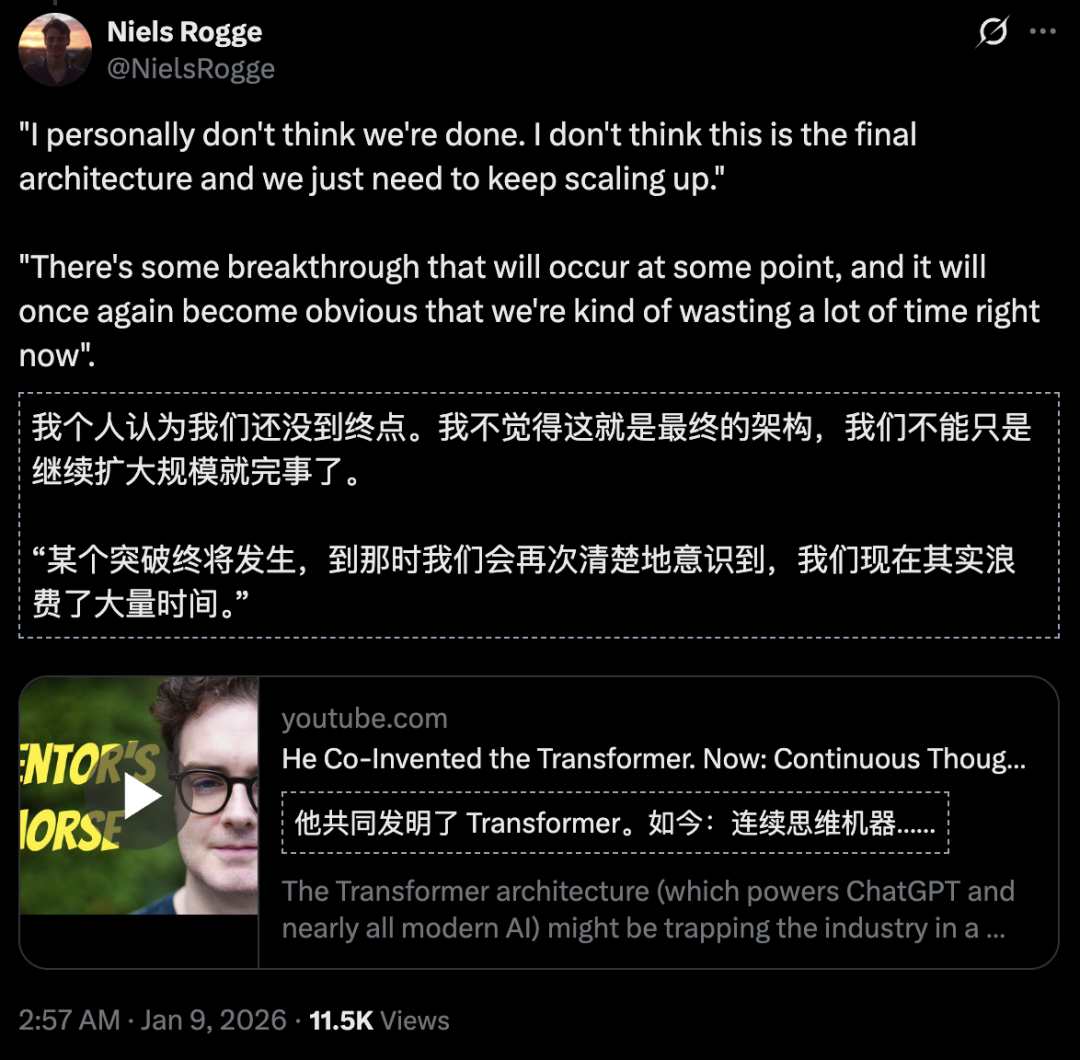 Llion Jones并未声称知道未来方向,只是坦言Transformer可能不是长期答案。这很诚实,却缺乏可操作性。
