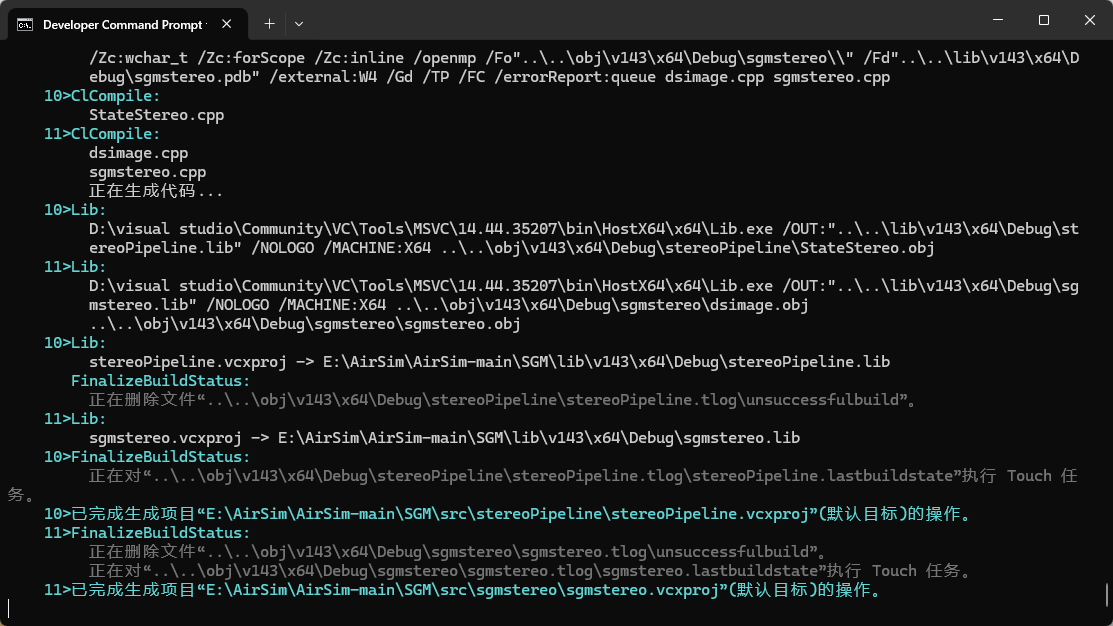 开始编译AirSim。该过程中需要下载部分代码,我在下载过程中需要科学上网,根据个人情况选择是否使用。整个编译过程大概5-10分钟即可。如果长时间没退出编译,则存在问题。