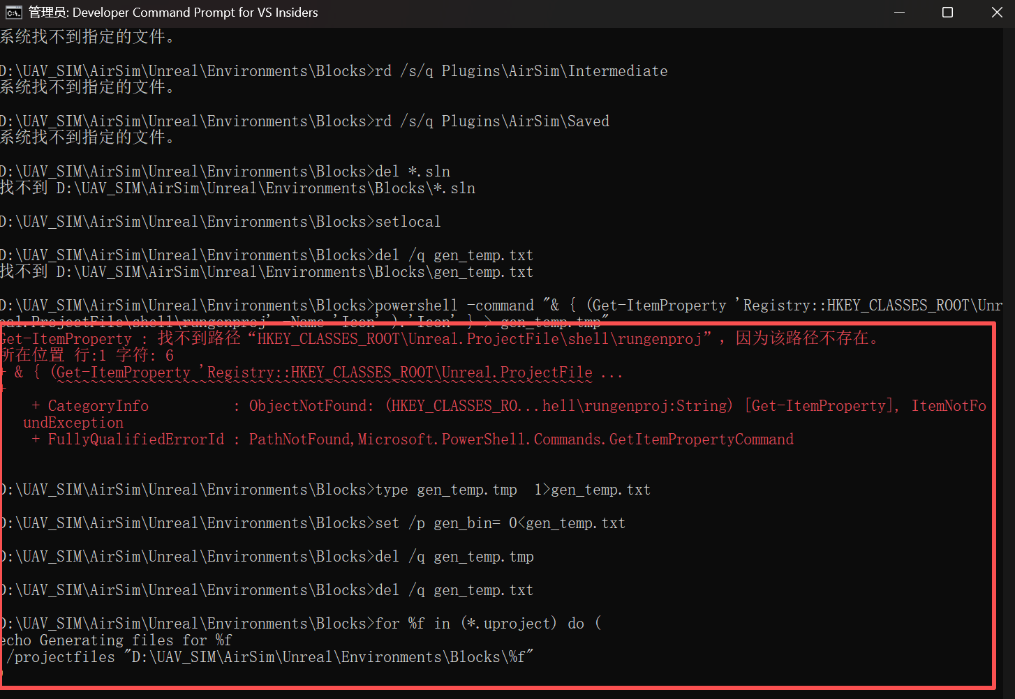 Airsim + UE5安装配置遇到的‘/projectfiles‘ 不是内部或外部命令,也不是可运行的程序或批处理文件问题解决。