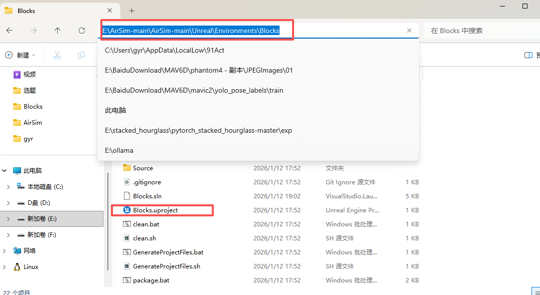 编译好之后会在 “AirSim\Unreal” 文件夹中生成 “Plugins” 文件夹。这个 “Plugins” 文件夹非常重要,可以把它复制到任何一个虚幻引擎的工程中,这样就可以使用 AirSim 插件了。