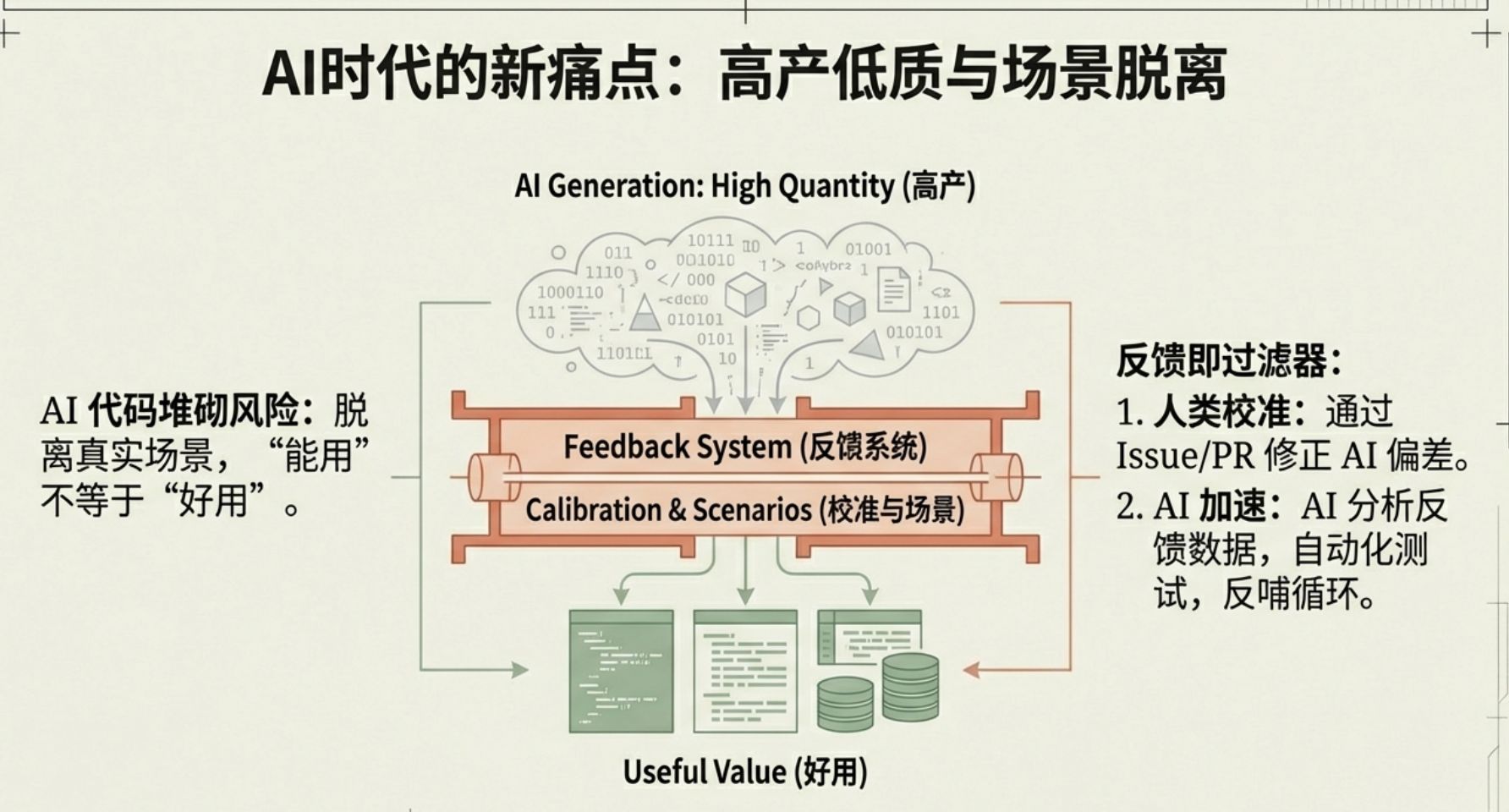 AI 时代,闭门用 AI 易陷入 “代码堆砌” 的陷阱,唯有建立完善的正反馈系统 —— 无论是开源还是其他路径,才能让技术真正创造价值。
