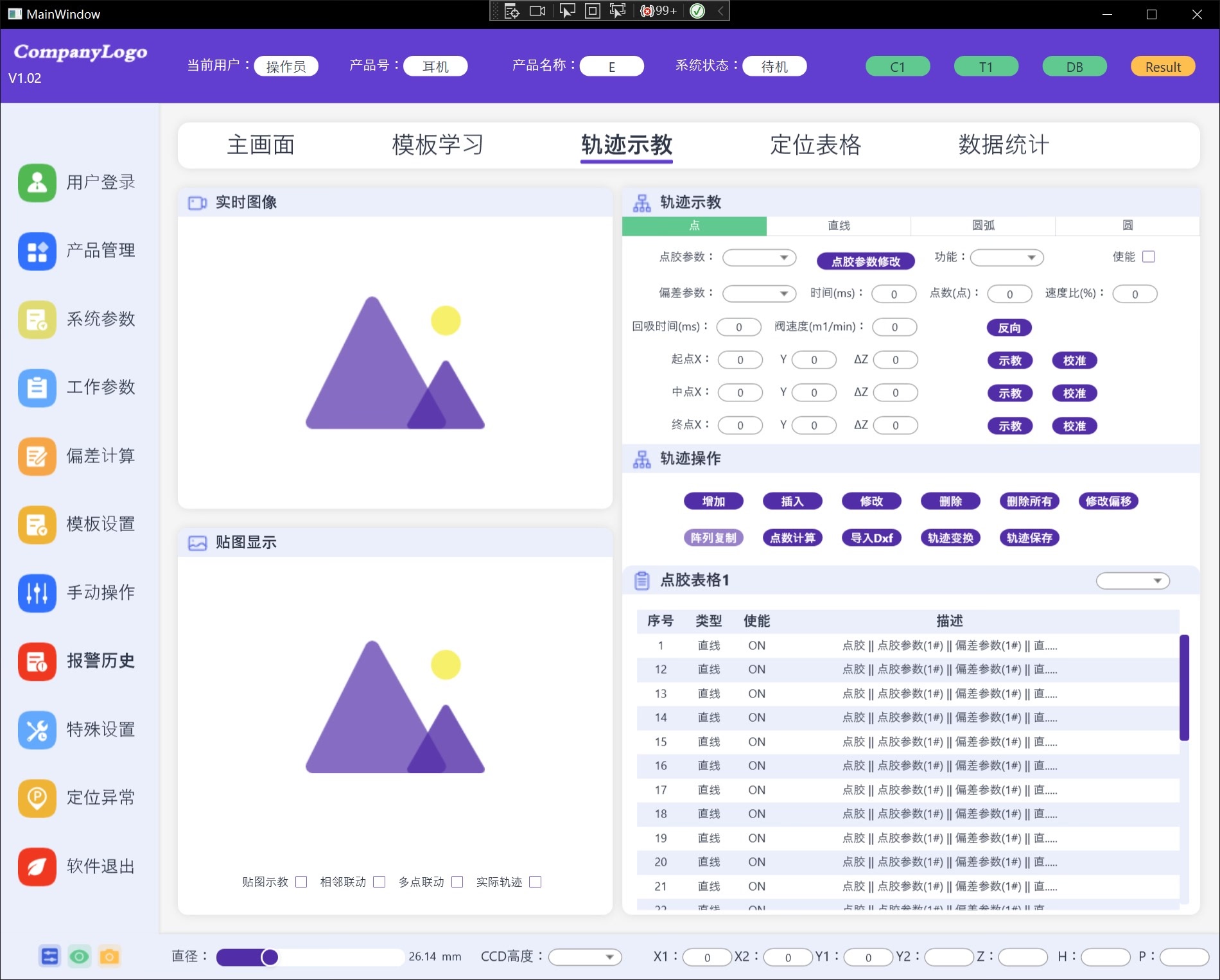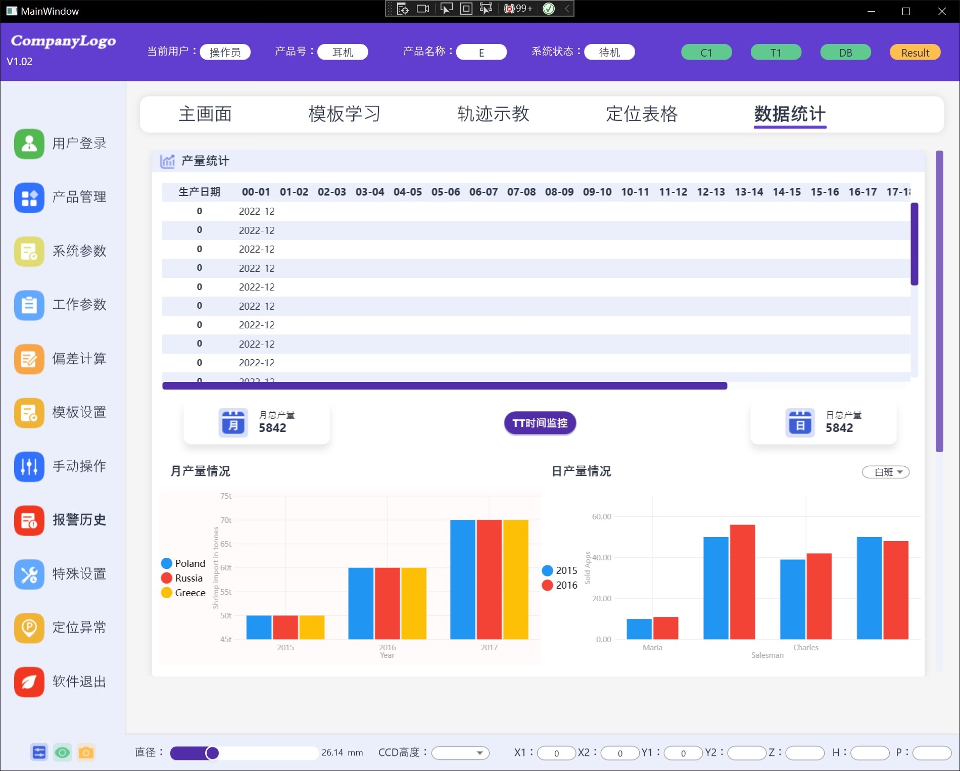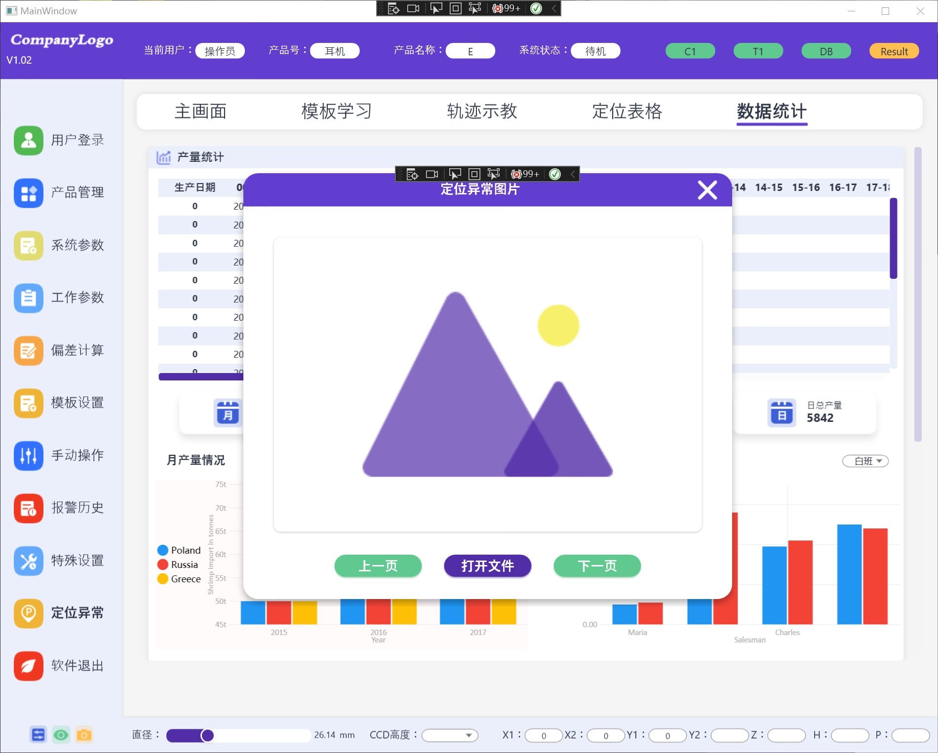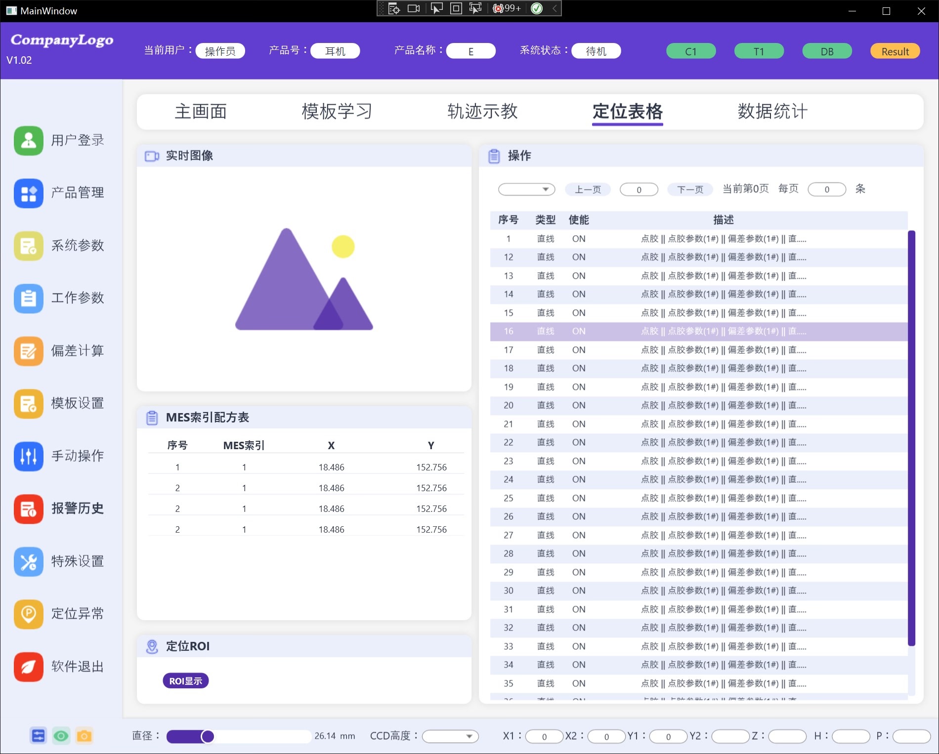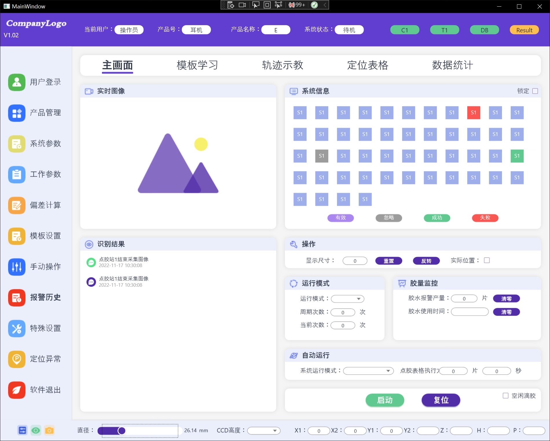 工控视觉项目桌面端WPF源码,UI源码,已实现前后端MVVM数据绑定。 除了两个柱状图用的第三方开源控件,其他都是原生自己写的,非常适合初学者熟悉语法、事件、触发器、MVVM 机制、布局容器,方便二次开发和修改