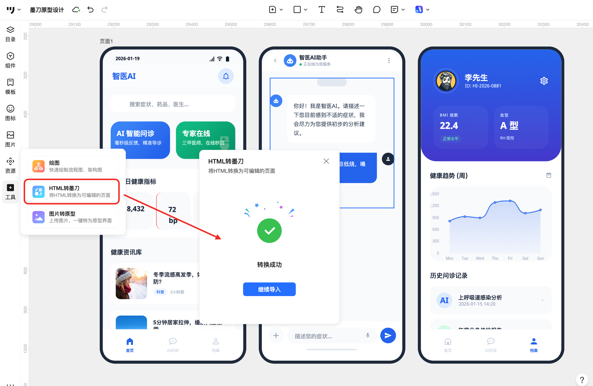 3. 通过「HTML转原型」的方式导入原型工具