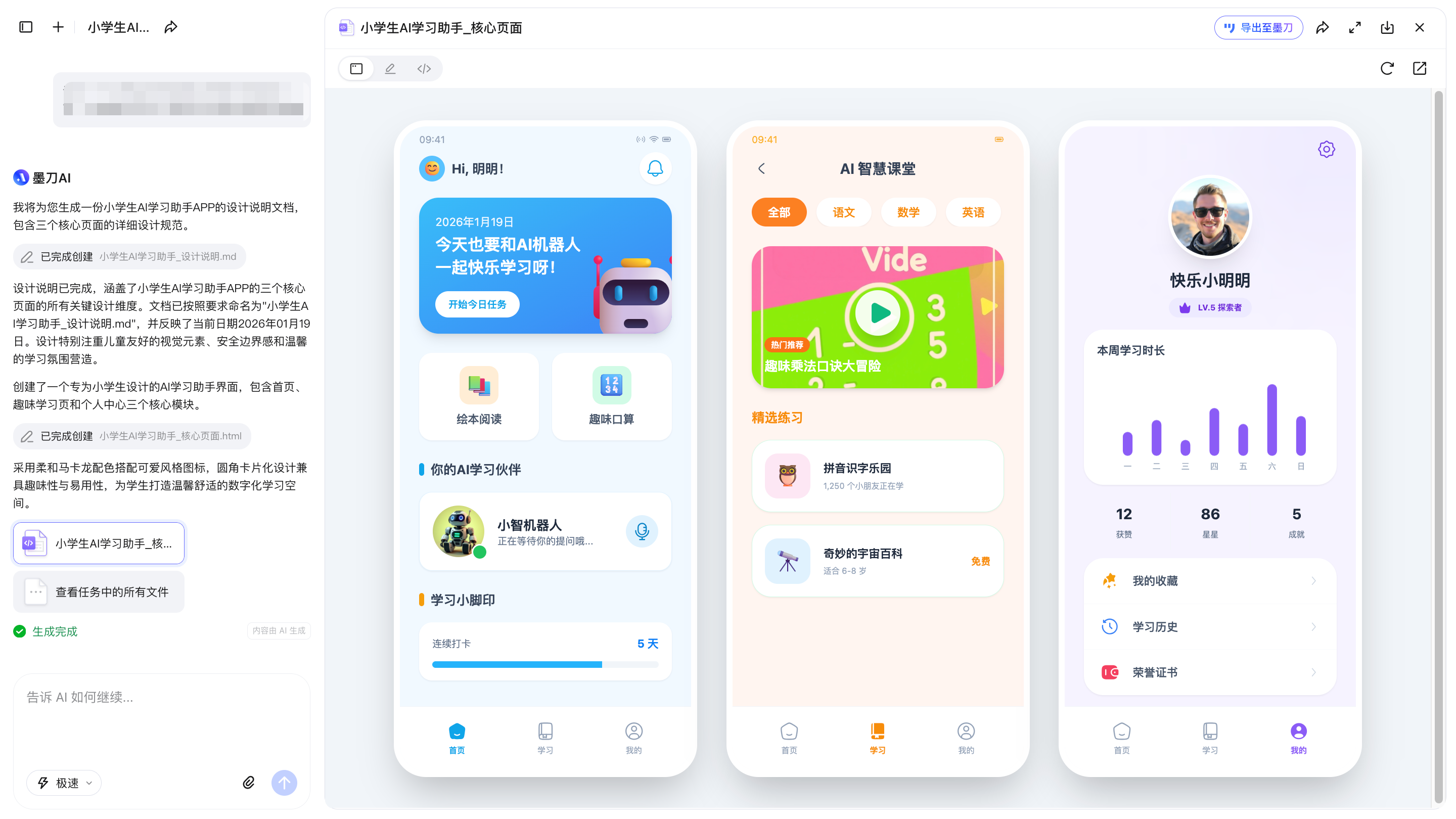 如果你的目标是快速出Demo,并且马上能修改调整,后续还能进评审、能做方案对比。那Cursor不一定能满足,有其他AI工具能给你不一样的体验。现在主流的原型工具(比如Figma、墨刀)都已经在做AI生成原型界面这件事了。FigmaMake偏向生成UI界面,所以这里就以墨刀AI生成原型为例: