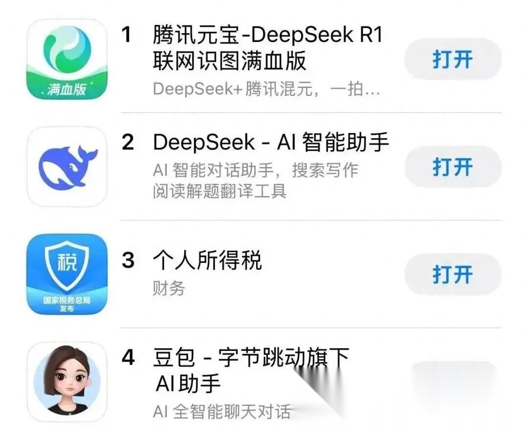 超越DeepSeek,腾讯元宝登顶苹果中国区免费APP下载排行榜
