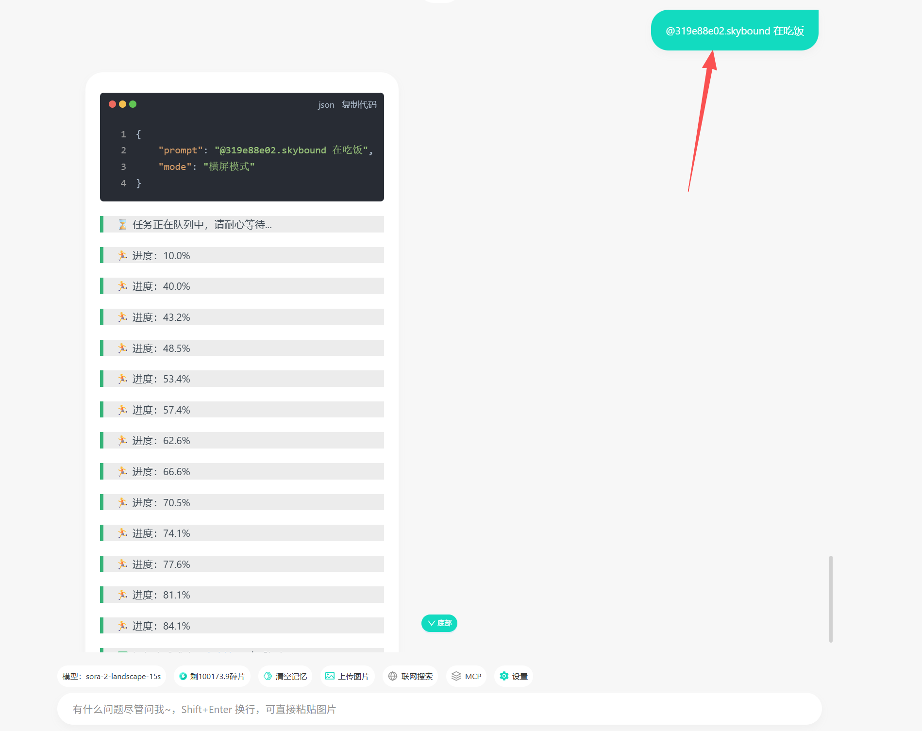 - 直接打字告诉它:“帮我生成一个视频,内容是......”