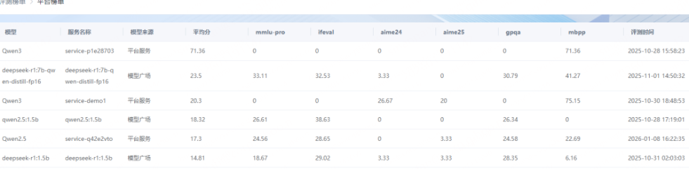 AI评测平台支持创建平台榜单,用户可对自己训练的模型进行评测,平台将评测的模型进行打分并生成榜单。
