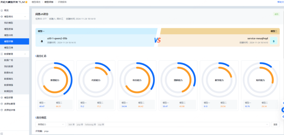 对于自研模型的团队,开发者可快速验证新算法或数据策略的效果,定位模型弱点(如特定领域的知识盲区、推理缺陷),实现高效的定向优化。