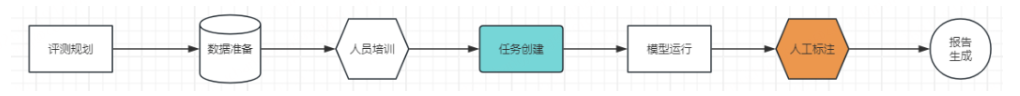 人工评测主要有7个步骤:评测规划→数据准备→任务设计→人员培训→任务创建→模型运行→人工标注报告生成。