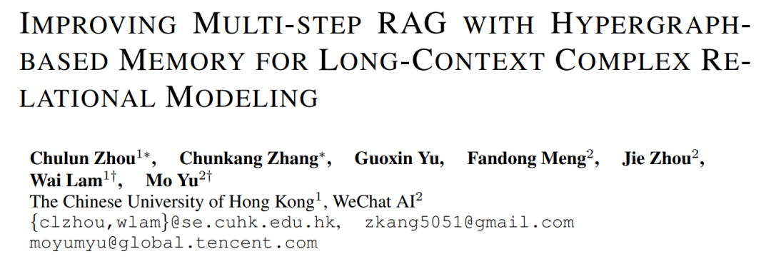 IMPROVING MULTI-STEP RAG WITH HYPERGRAPHBASED MEMORY FOR LONG-CONTEXT COMPLEX RELATIONAL MODELING