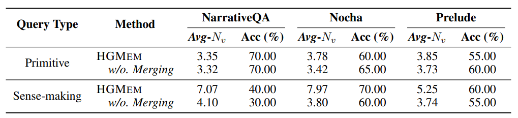 - 对于理解性查询,HGMEM通过构建更复杂的关系(平均实体数7.07 vs 4.10)实现更高的准确率