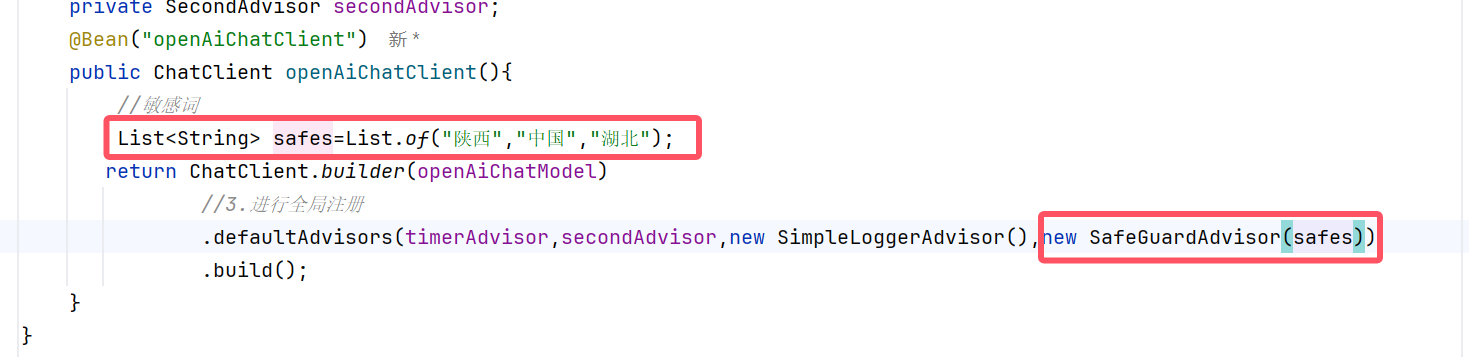 - 调⽤⼤模型时,将自定义的 advisor 类添加进去即可。