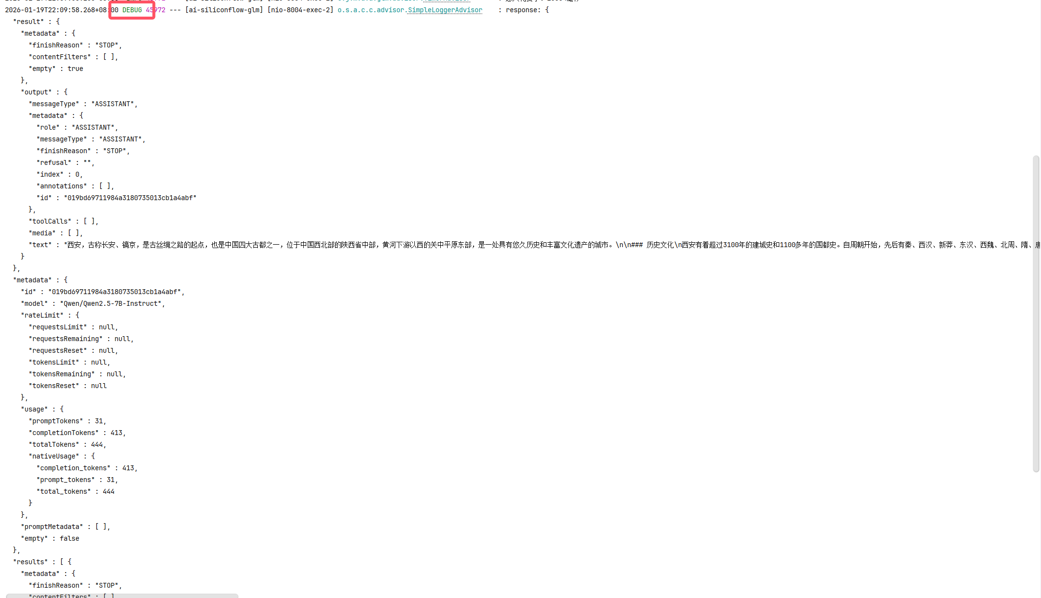 - ⽇志记录:默认记录 Debug 级别的⽇志,包括⽤户输⼊⽂本、模型响应等内容,但默认不显示。