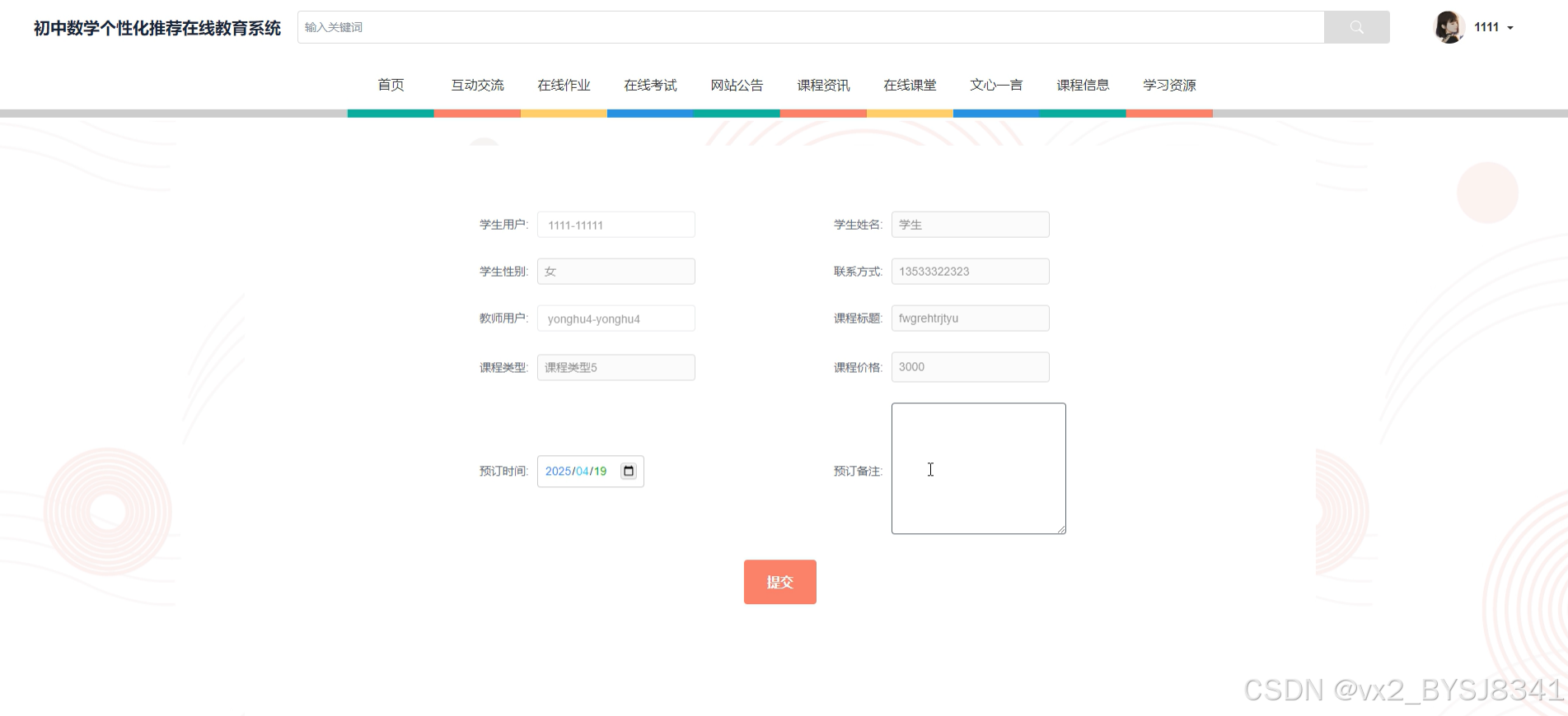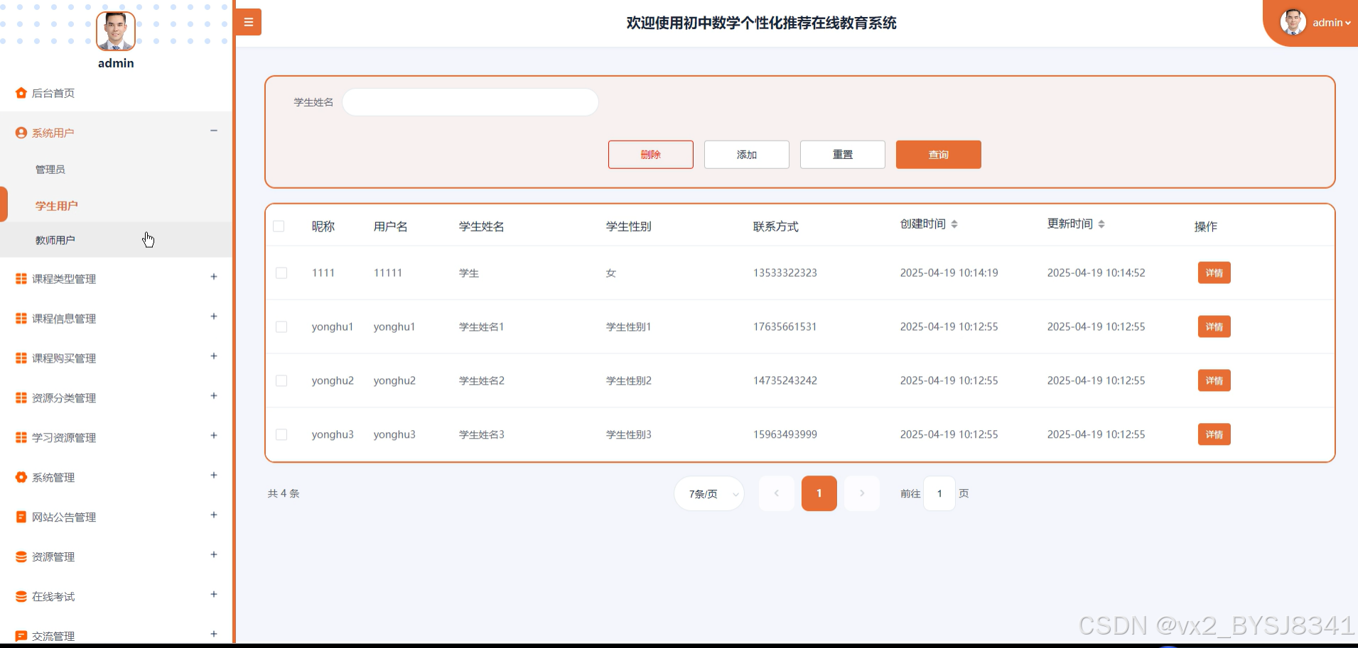 随着信息技术的迅猛发展,传统的教育方式已经无法满足现代教育对个性化和高效化的需求,尤其是在初中阶段的数学学习中,学生的学习需求和进度存在较大差异。如何利用现代技术手段改善学生的学习体验,提高学习效果,已成为教育领域的重要课题。随着网络教育平台的普及和教学资源的不断丰富,个性化学习逐渐成为优化教育质量的关键之一。数学学科尤其需要针对不同学生的知识掌握情况进行个性化辅导,以帮助学生在理解和应用数学知识方面取得更好的成果。