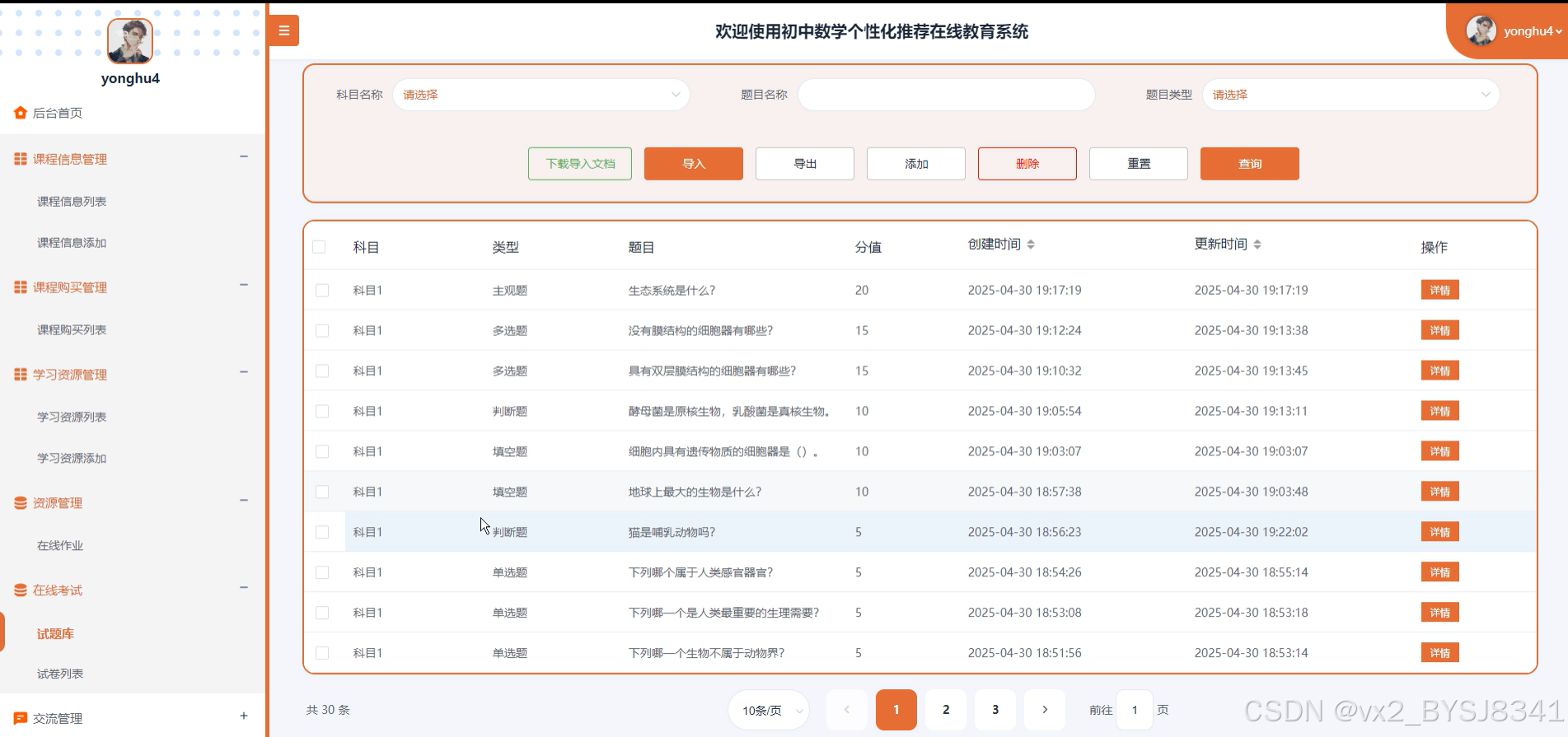 【关注可白嫖源码】--28179基于人工智能大模型的初中数学个性化推荐在线教育系统