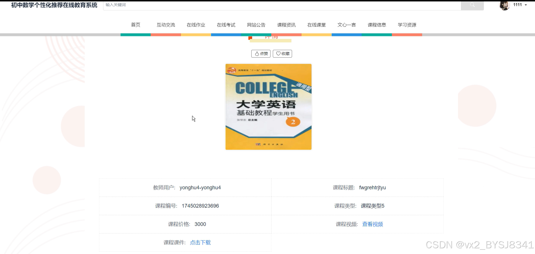 2. 课程信息管理:教师可以管理课程的内容、进度安排及相关资料。