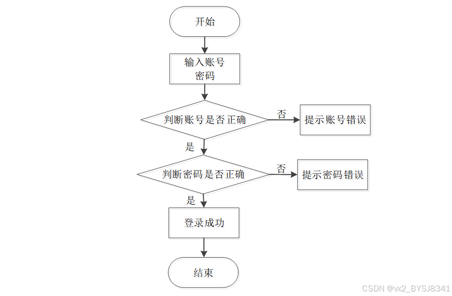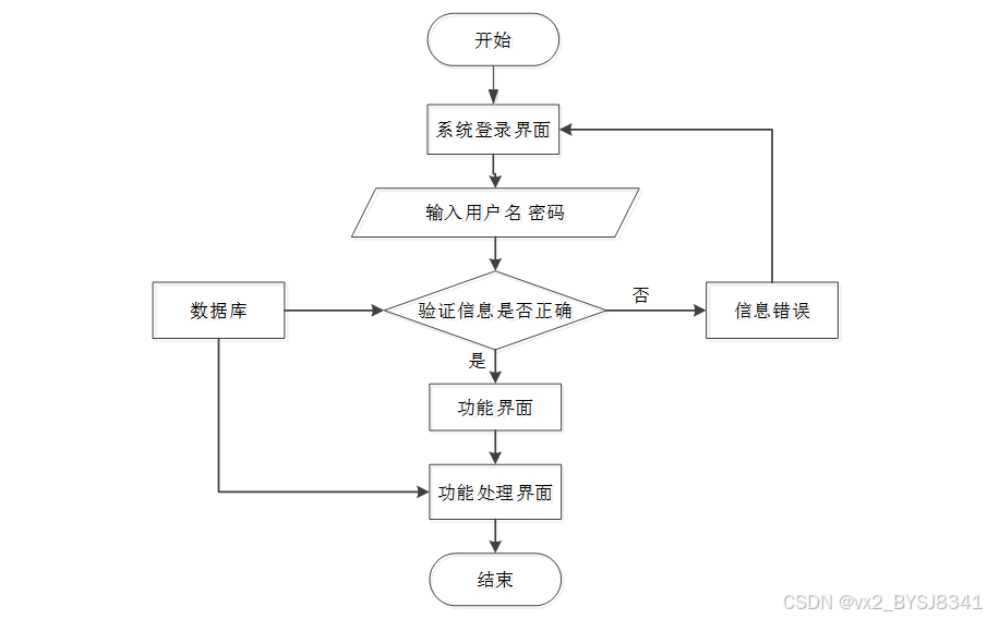 用户访问平台的网站,进入登录页面页面,入其用户名和密码,后端服务接收登录请求,验证用户提供的用户名和密码是否匹配数据库中存储的信息,验证通过即可登录成功。登录流程图如下图所示。
