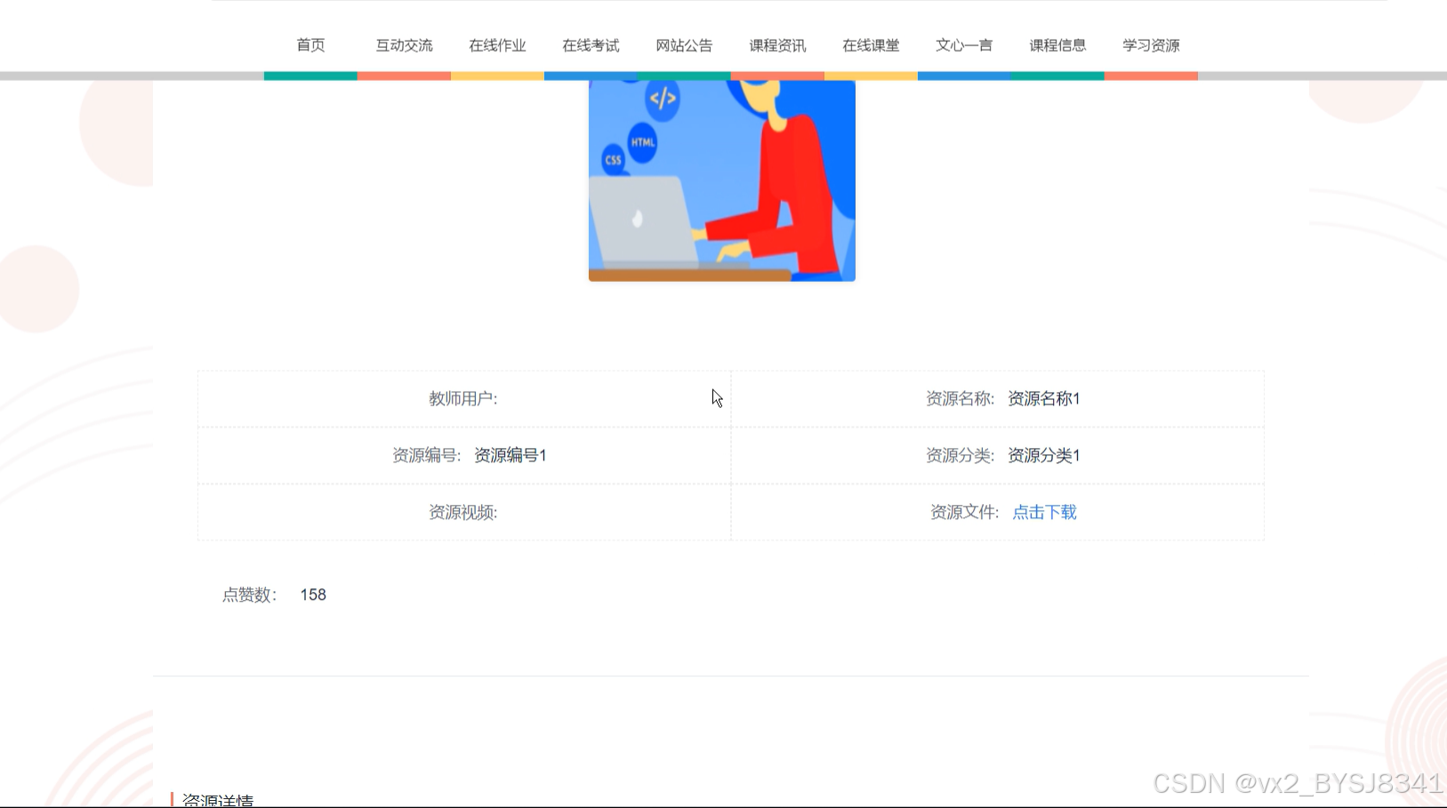 10. 资源管理(课程资讯、资讯分类、在线作业):管理课程相关资讯、作业等资源的发布与分类。