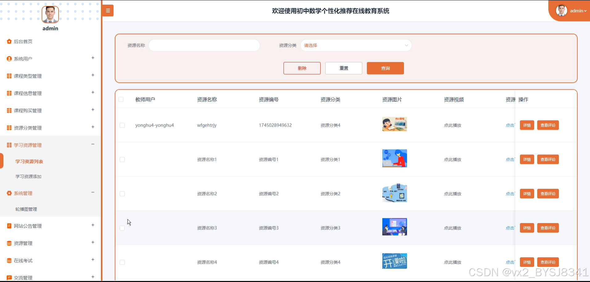 7. 学习资源管理:管理员可以上传、维护和管理平台中的各类学习资源。