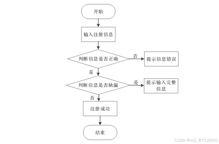 未有账号的用户可进入注册界面进行注册操作,填写注册表格,包括用户名、密码、电子邮件等必要信息。后台系统验证并保存用户提交的信息。分配唯一用户标识符。注册成功后,用户可以使用账号密码进行登录。用户注册流程图如下图所示。