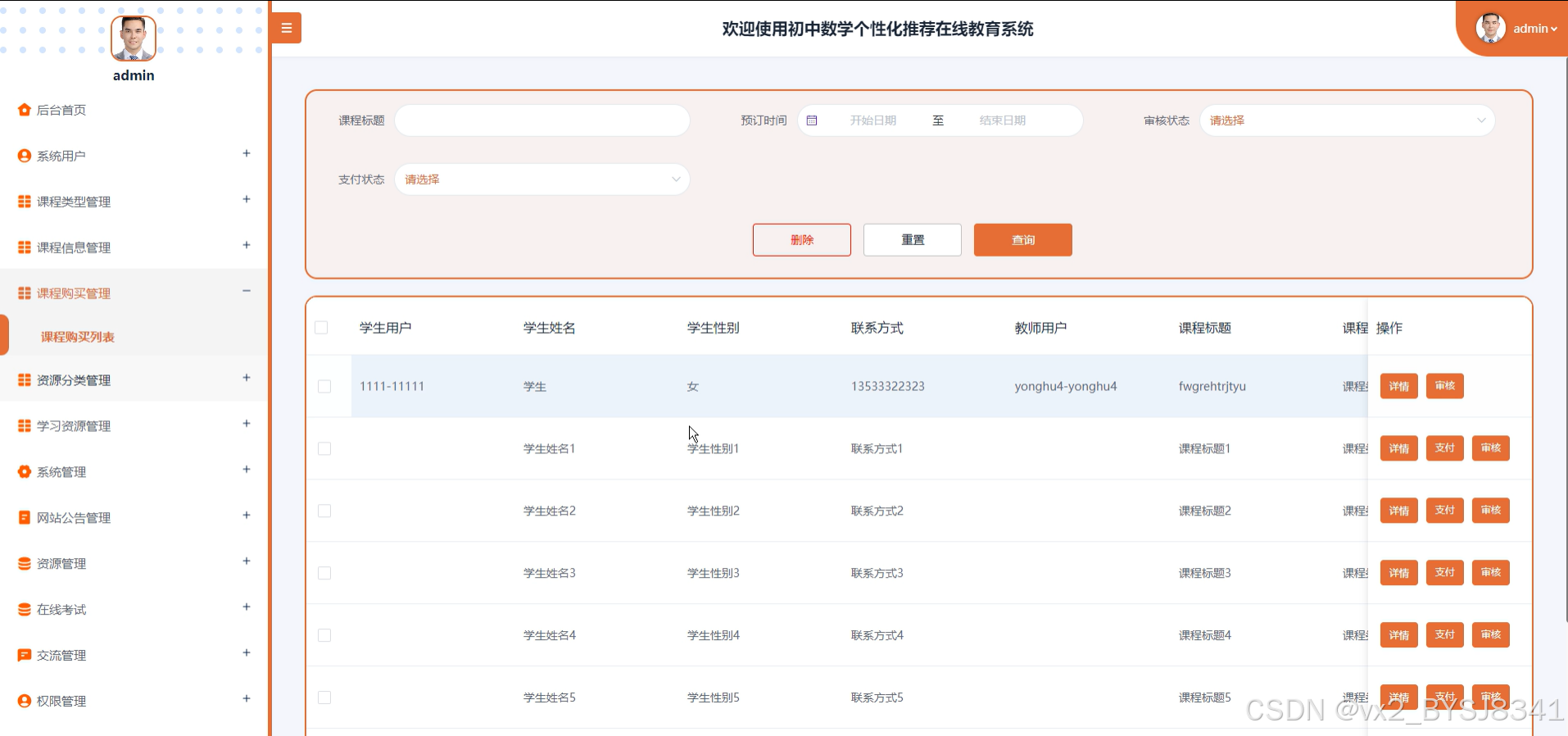 5. 课程购买管理:监控和管理课程的购买记录,分析销售数据。
