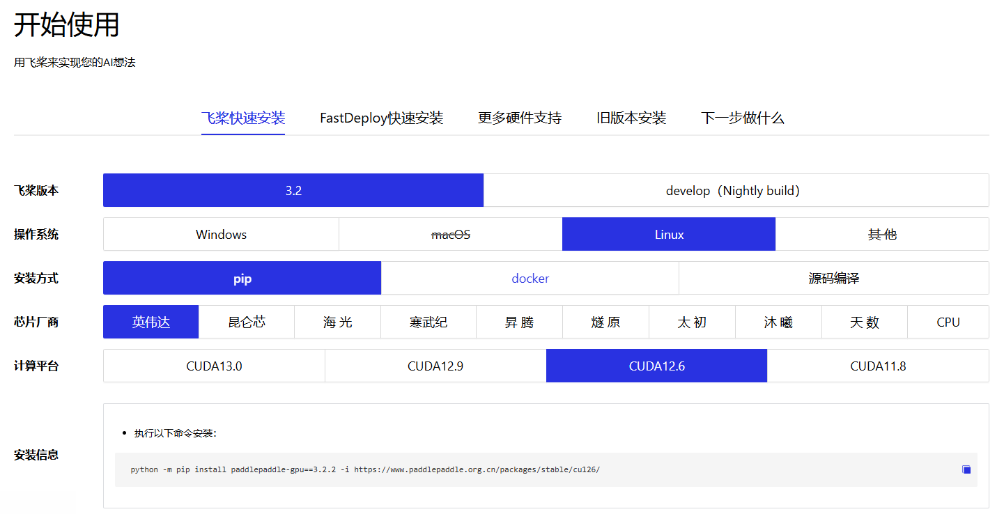 python -m pip install paddlepaddle-gpu==3.2.2 -i https://www.paddlepaddle.org.cn/packages/stable/cu126/
