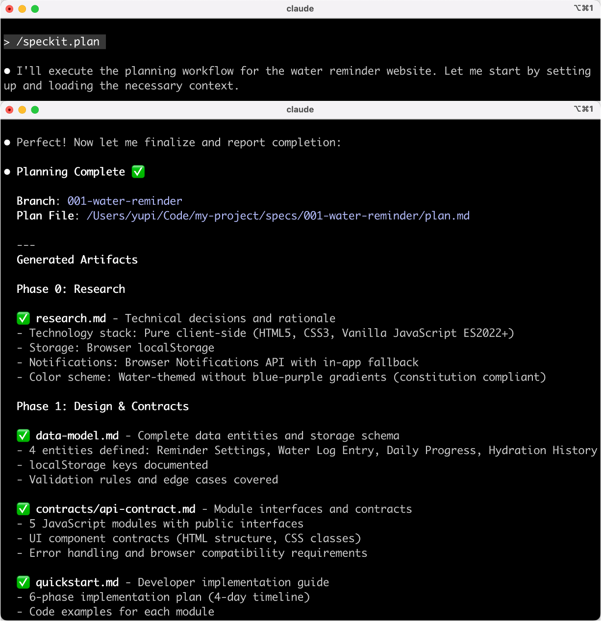 查看 AI 生成的实施计划文档,每个任务都包含: