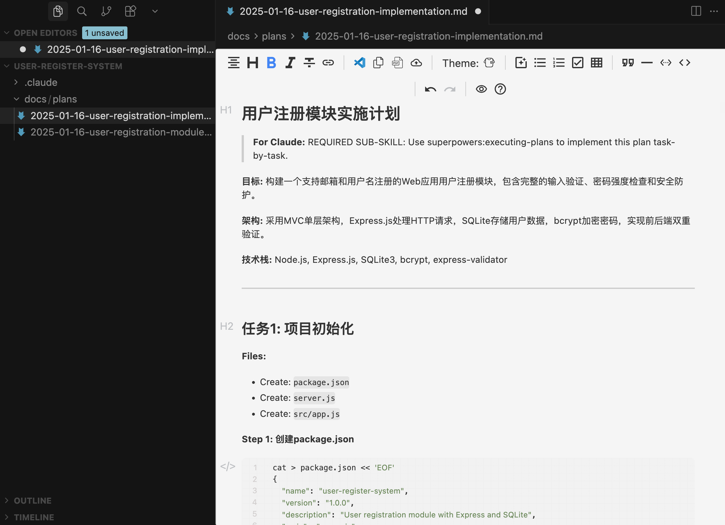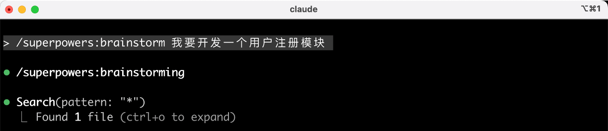 下面以开发一个 “用户注册模块” 为例,演示 Superpowers 官方的标准工作流程。