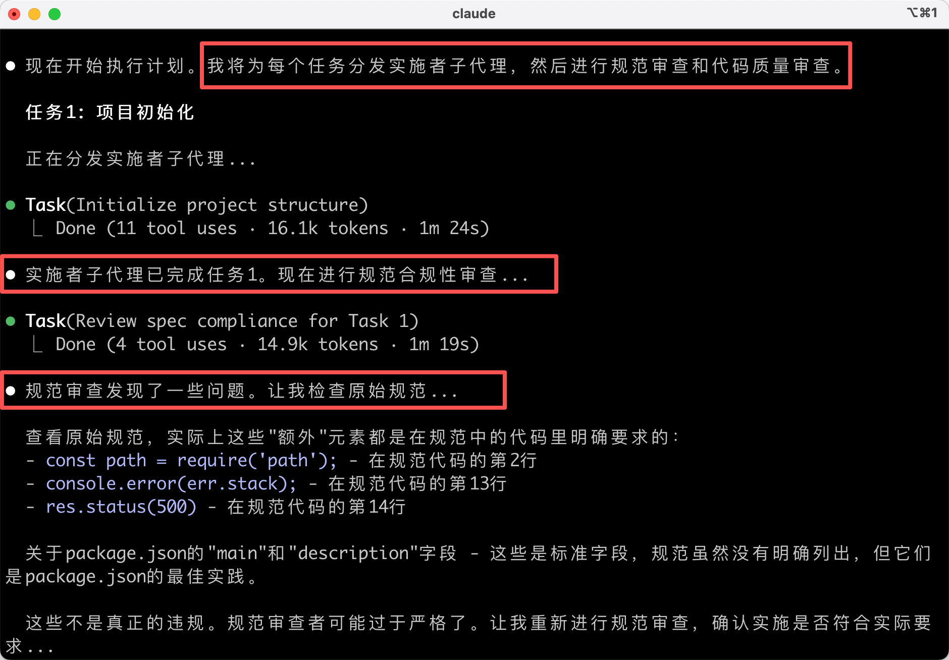 每完成一批任务后,Superpowers 会自动触发代码审查,对照计划检查代码,按严重程度报告问题。如果发现严重问题(Critical),会阻止继续进行。