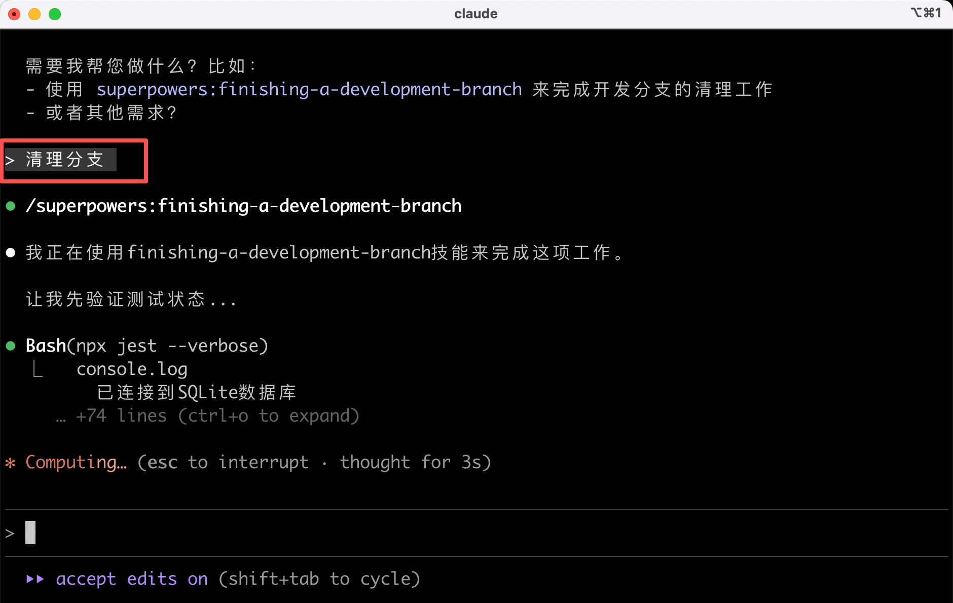 如果你确定功能没有问题,可以利用 Superpowers 内置的技能来完成开发分支的清理工作。