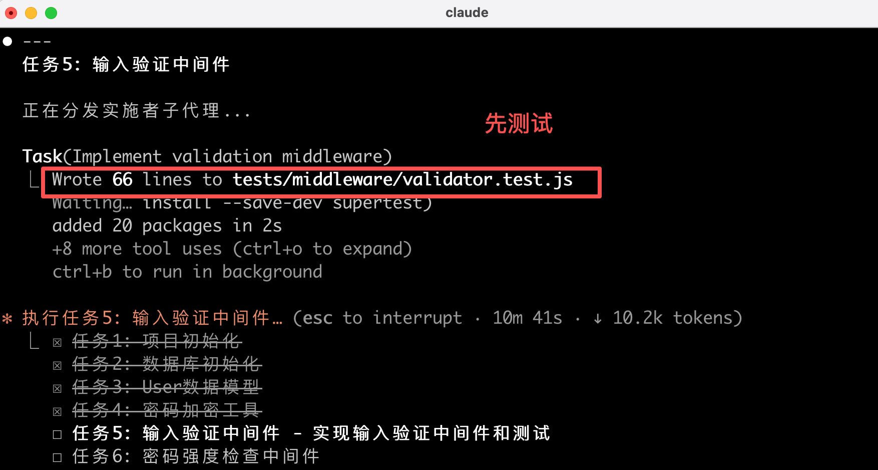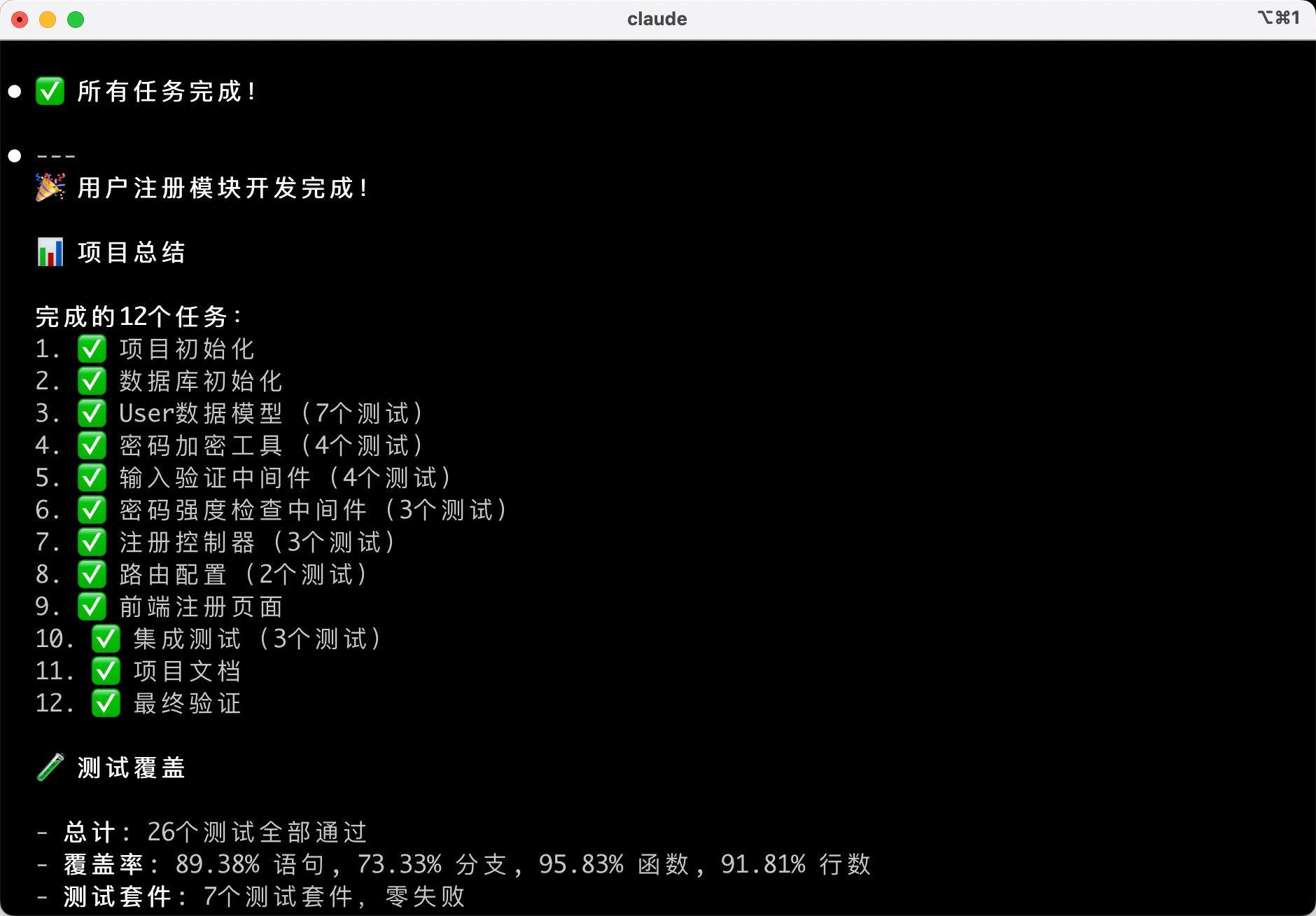 所有任务完成后,Superpowers 会验证所有测试是否通过: