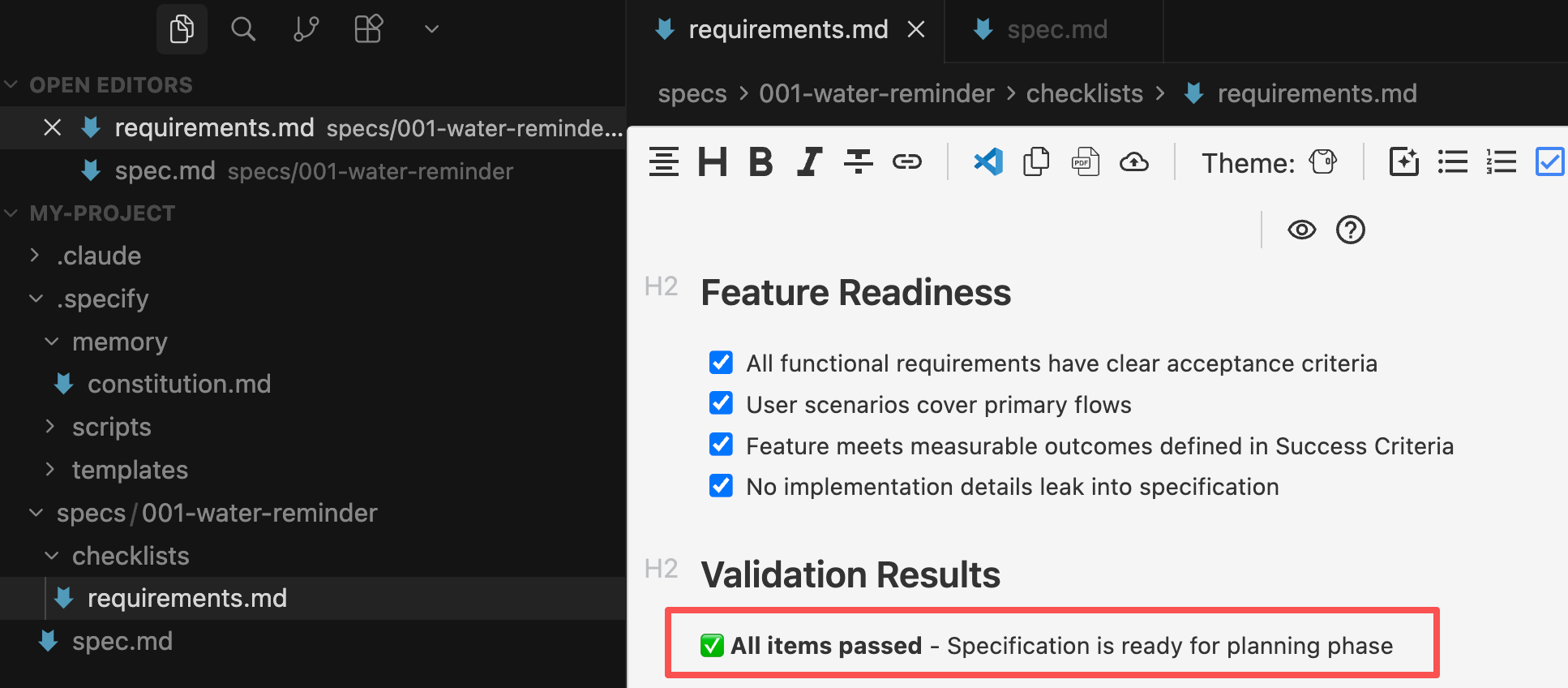 这套 “先设计后编码” 的规范流程走下来,代码质量会更有保障,不过代价就是速度确实比让 AI 直接生成代码会慢很多。真的是慢很多!就这么个需求我搞了半个多小时!!!